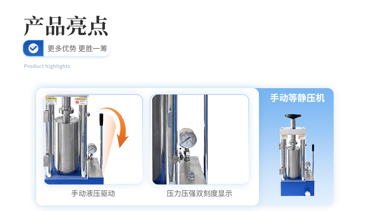 該機(jī)采用電動(dòng)液壓驅(qū)動(dòng),分體式結(jié)構(gòu),智能化的程序控制系統(tǒng),安全可靠的防護(hù)裝置,制樣完畢可輕松拖動(dòng)等靜壓腔體至取樣平臺(tái),其操作簡(jiǎn)便,取樣方便,適合需要大噸位、大物件樣品的等靜壓實(shí)驗(yàn)。