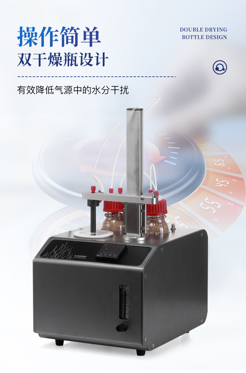 | 1、10ml樣品瓶:使用四氟與硅膠復(fù)合墊片,高溫條件下不會(huì)釋放可能產(chǎn)生副反應(yīng)的物質(zhì) | 2、雙干燥瓶設(shè)計(jì),有效降低氣源中的水分干擾 | 3、加熱保溫管路,防止水汽在輸送過程中冷凝,提高測試準(zhǔn)確性 |