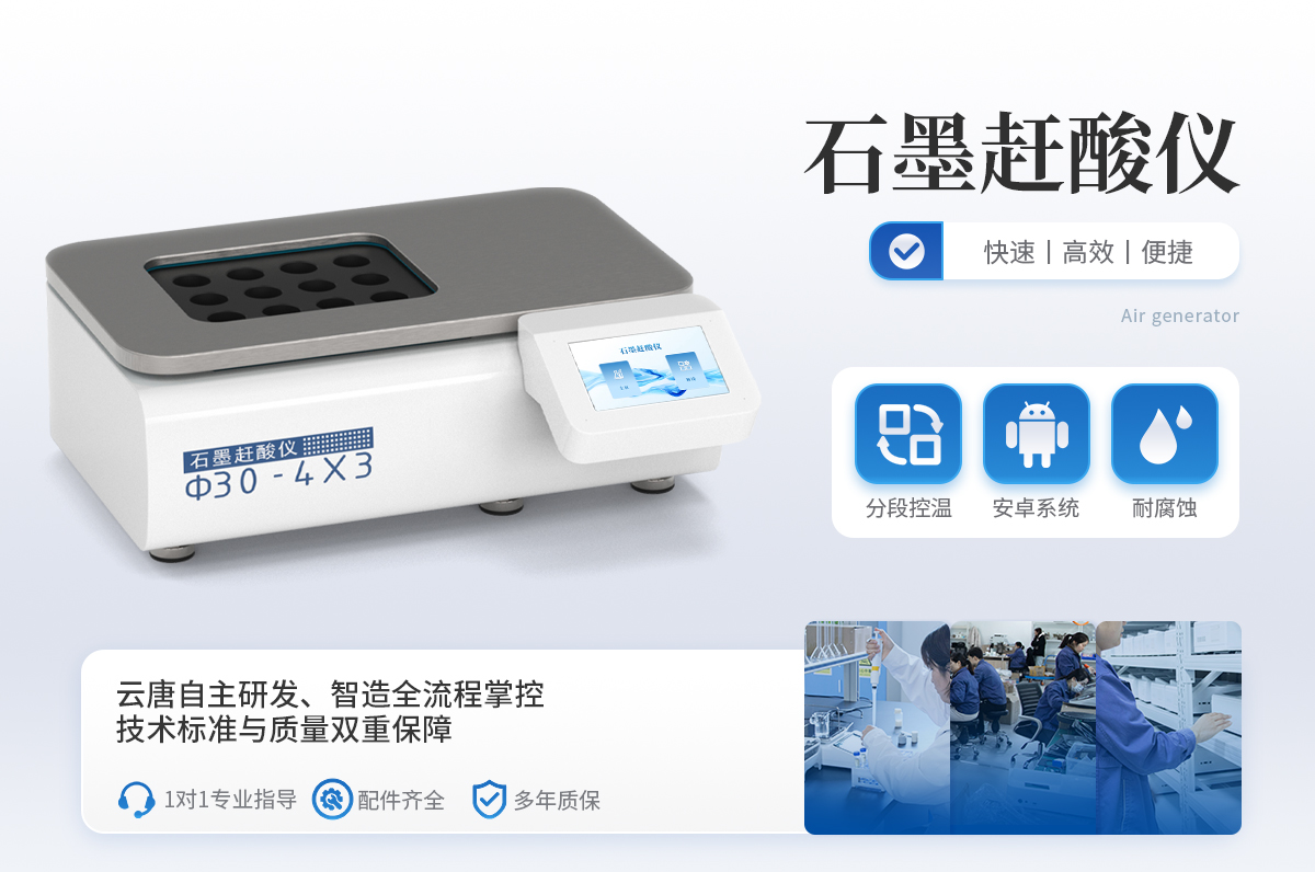 石墨趕酸儀,具有快速、**、便捷等優(yōu)點(diǎn),適用于食品、藥品、質(zhì)檢、環(huán)保、疾控、化工、高校等行業(yè)樣品的處理??捎糜谖⒉ㄏ獾念A(yù)處理和趕酸處理,是原子吸收、原子熒光、ICP-AES等分析儀器的理想配套產(chǎn)品,更適合與微波消解儀配套使用。