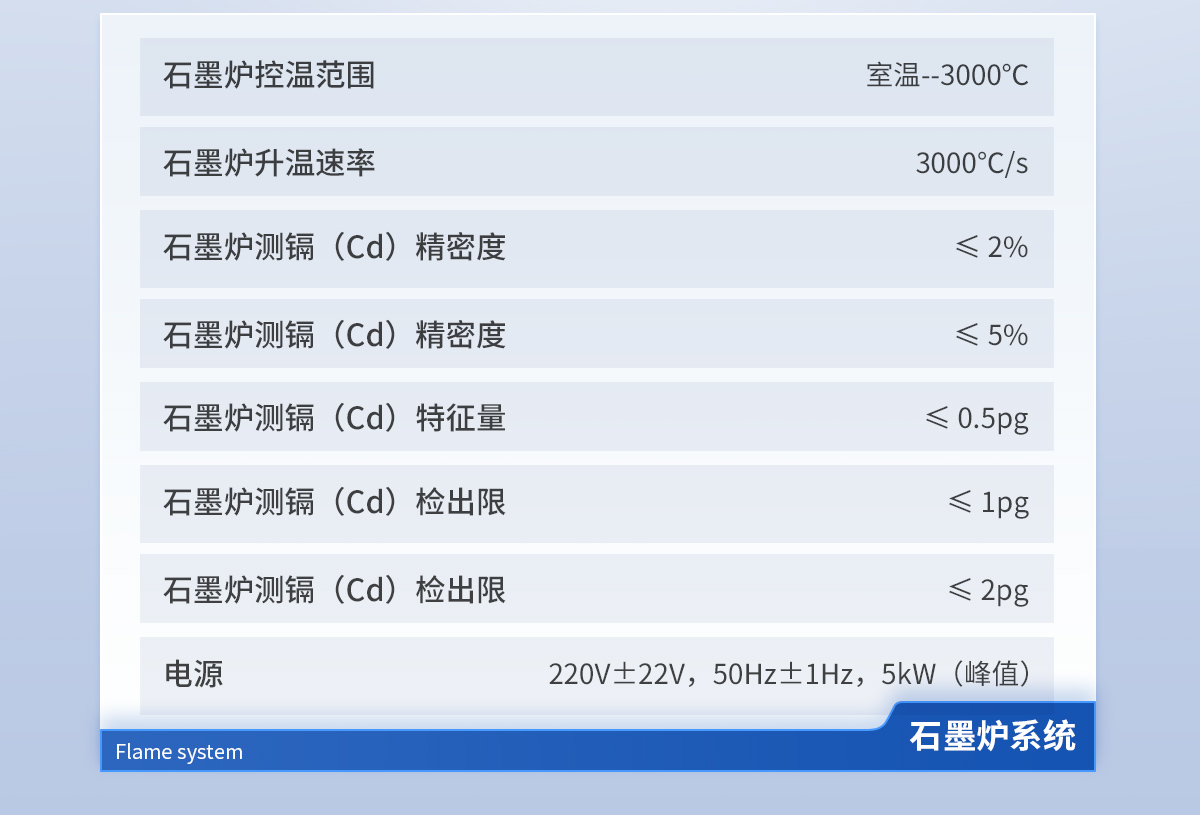 采用 1800 L/mm、閃耀波長 230nm 光柵作為分光系統(tǒng)。 3、八元素?zé)魺羲?br/>八燈座設(shè)計,八路獨立燈電源,一燈工作,可以實現(xiàn)七燈預(yù)熱,節(jié)省了換燈和預(yù)熱時間。 4、全自動化設(shè)計