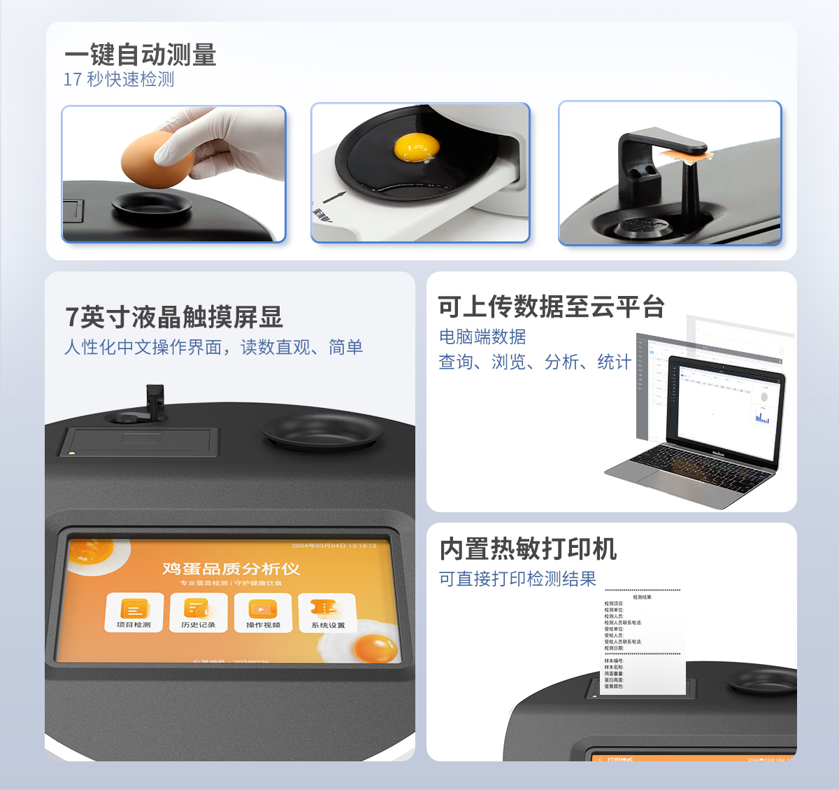 隨著消費者對食品安全問題的日益關(guān)注,雞蛋品質(zhì)檢測成為了保障雞蛋質(zhì)量、維護(hù)消費者健康權(quán)益的重要手段。我司生產(chǎn)的雞蛋品質(zhì)檢測儀可通過專業(yè)的檢測項目和方法,進(jìn)行雞蛋的品質(zhì)檢測和分析。