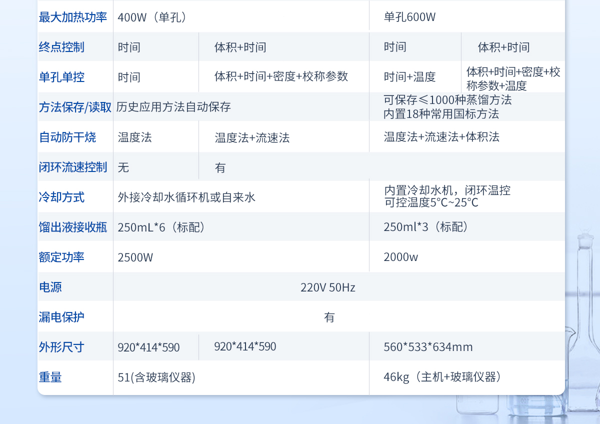 | 方法保存/讀取 | 歷史應用方法自動保存,自動加載 | 可保存≤1000種蒸餾方法,內置18種常用國標方法 | |